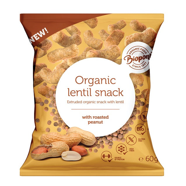 BIOPONT, LENTIL SNACK WITH ROASTED PEANUTS 60G BIO