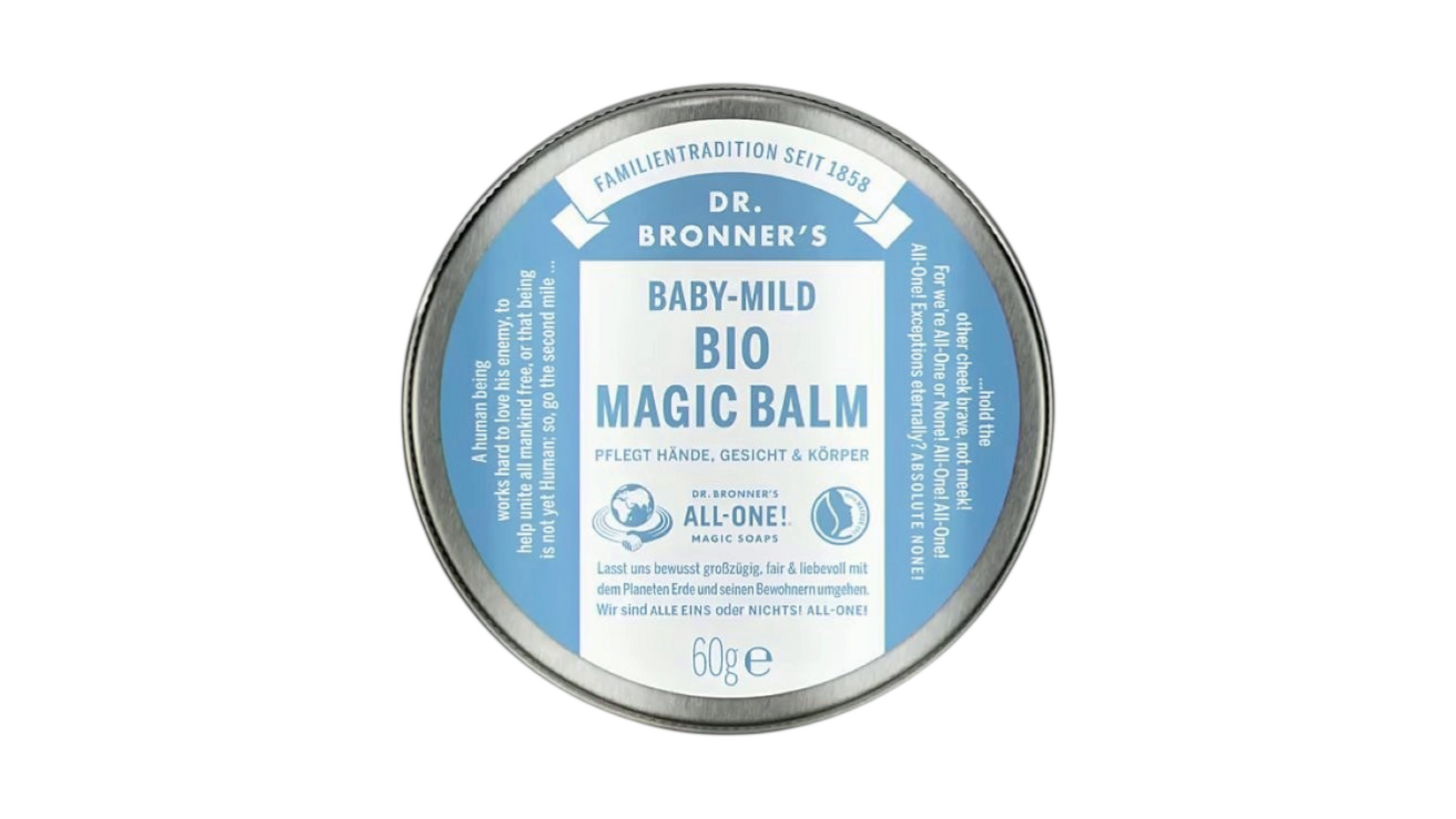 Gentle, nourishing, and all‑natural — Dr. Bronner’s Baby Mild Magic Balm 60 g BIO is a soothing skin balm specially formulated for delicate skin using certified organic and plant‑based ingredients. Designed to help moisturize, calm, and protect from dryness, this mild balm is ideal for everyday care on sensitive skin and gentle enough for the whole family.