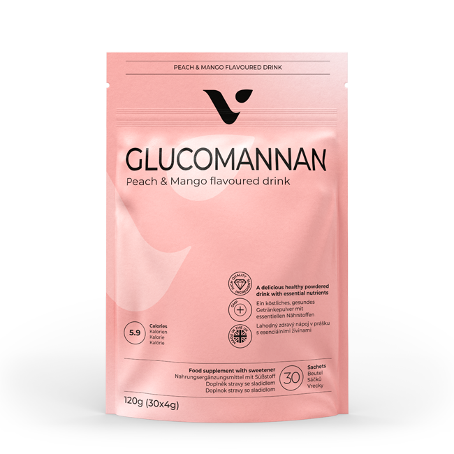 Refreshing and effective — Glucomannan Peach & Mango Drink (per sachet) is a delicious functional beverage designed to support weight management, appetite control, and energy levels. Each sachet contains 1000 mg of Glucomannan, a natural fiber from the konjac plant, enhanced with supportive ingredients for a comprehensive wellness boost.