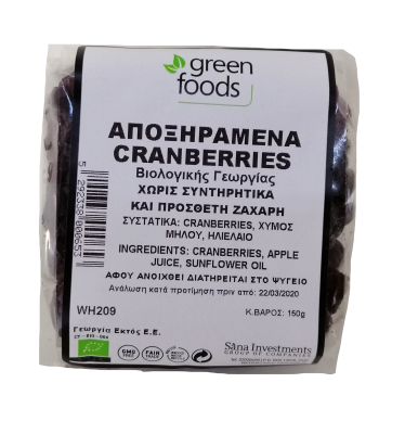 GREEN FOODS, DRIED CRANBERRIES 150G BIO