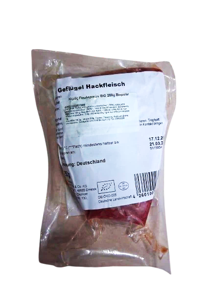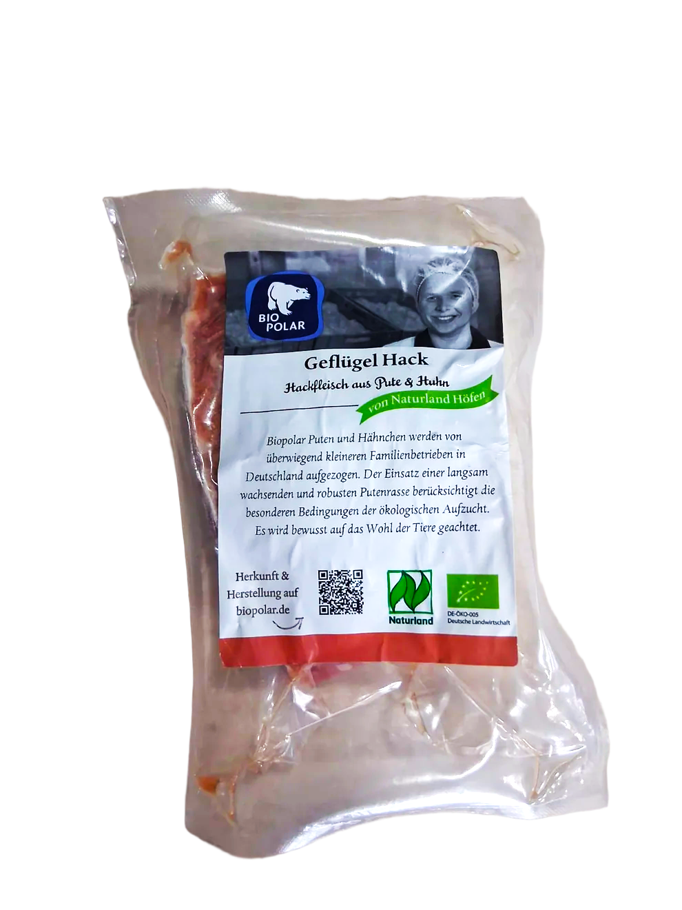 Lean and wholesome — Organic Poultry Minced Meat (approx. 400 g, Bio) is made from carefully sourced organic chicken and turkey, ensuring high-quality taste and nutrition. Naturally lean and rich in protein, it’s a versatile ingredient for healthy, homemade meals.