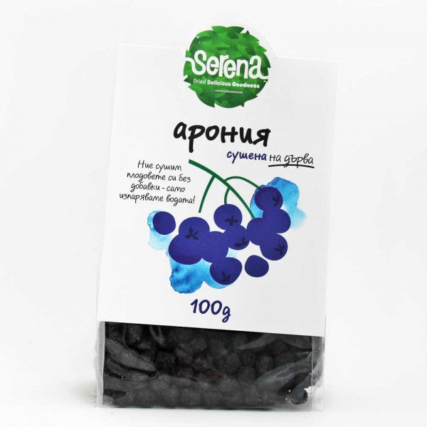 A nutrient-rich superberry with a bold flavor — Serena Aronia Berries (100 g), also known as chokeberries, are naturally dried to preserve their deep, tart taste and high content of antioxidants, vitamins, and minerals. These small but mighty berries are a true superfood that can be enjoyed as a snack or added to recipes.